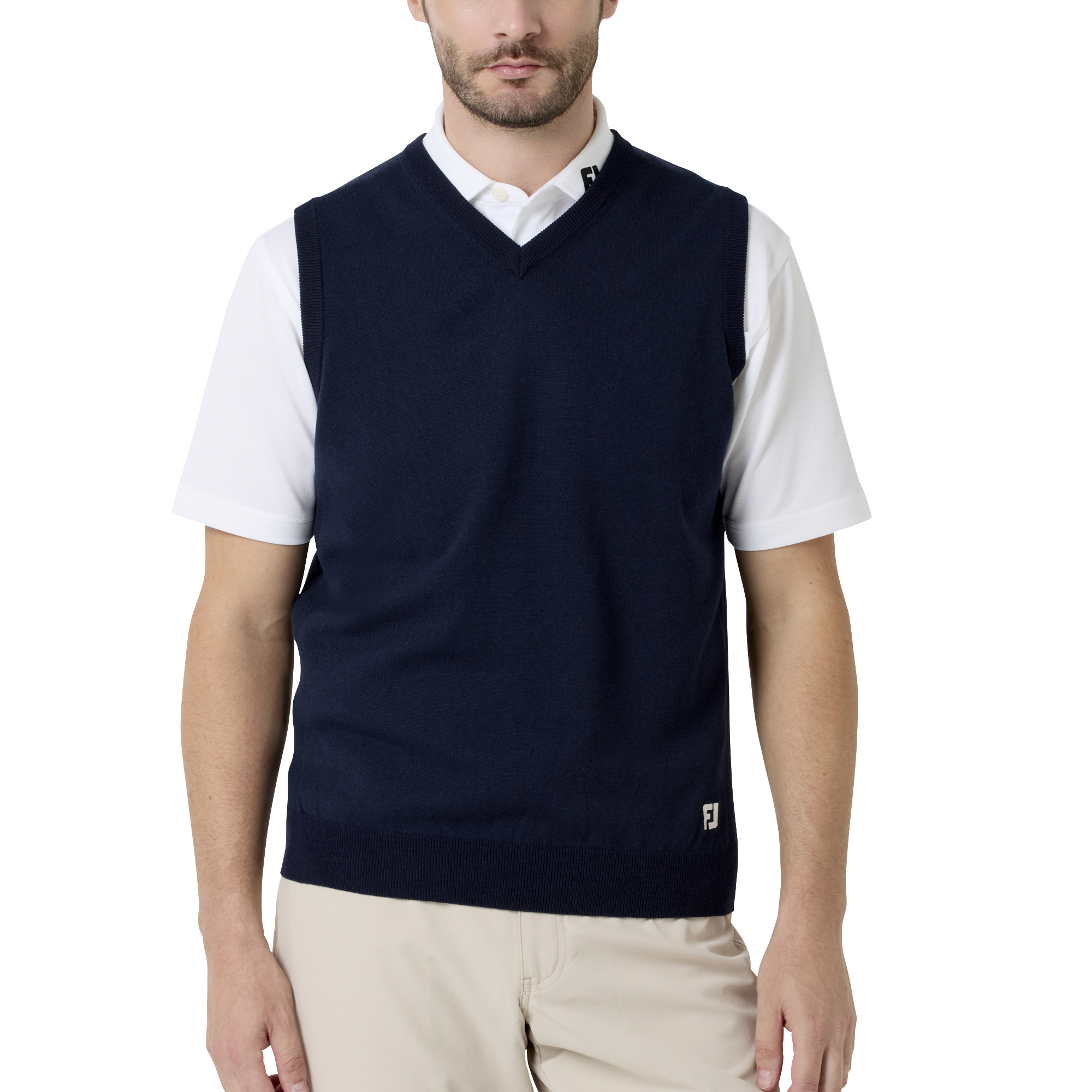 軽量ストレッチ素材がスイングをサポート。ドライタッチな着心地で、重ね着にも映えるスマートなニットベスト。