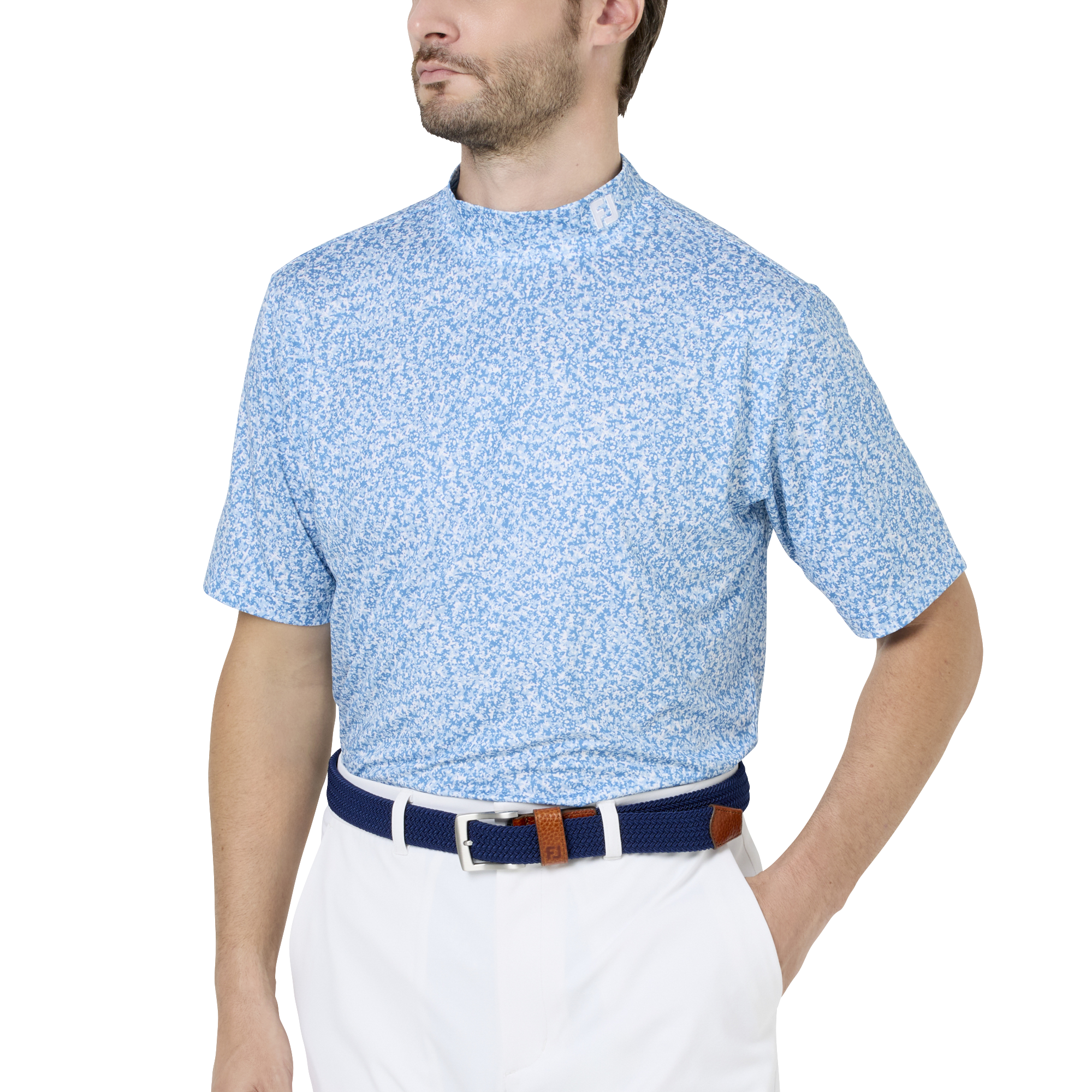 都会的に再解釈したカモフラージュ柄が存在感を演出。軽量ストレッチ素材とUVカット・吸湿速乾・抗菌防臭で、戦略的なプレーを快適に支えるモックネック。
