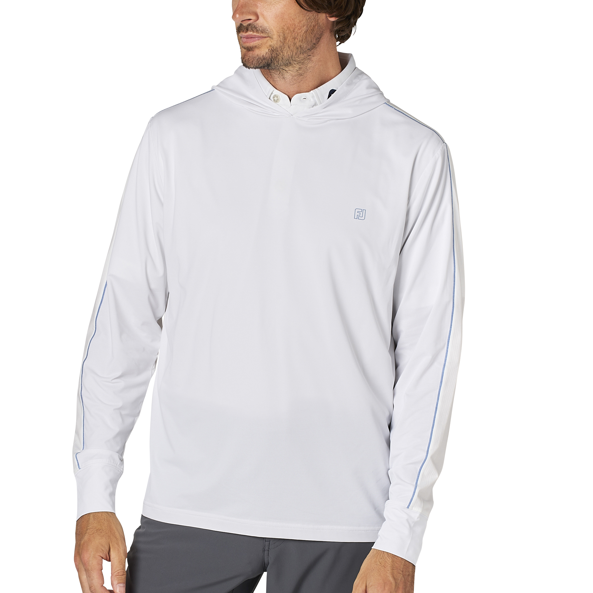 ハイブリッド仕様の長袖フーディー。軽量かつ快適な着心地を提供し、肌寒い時に羽織る一枚として重宝します。
