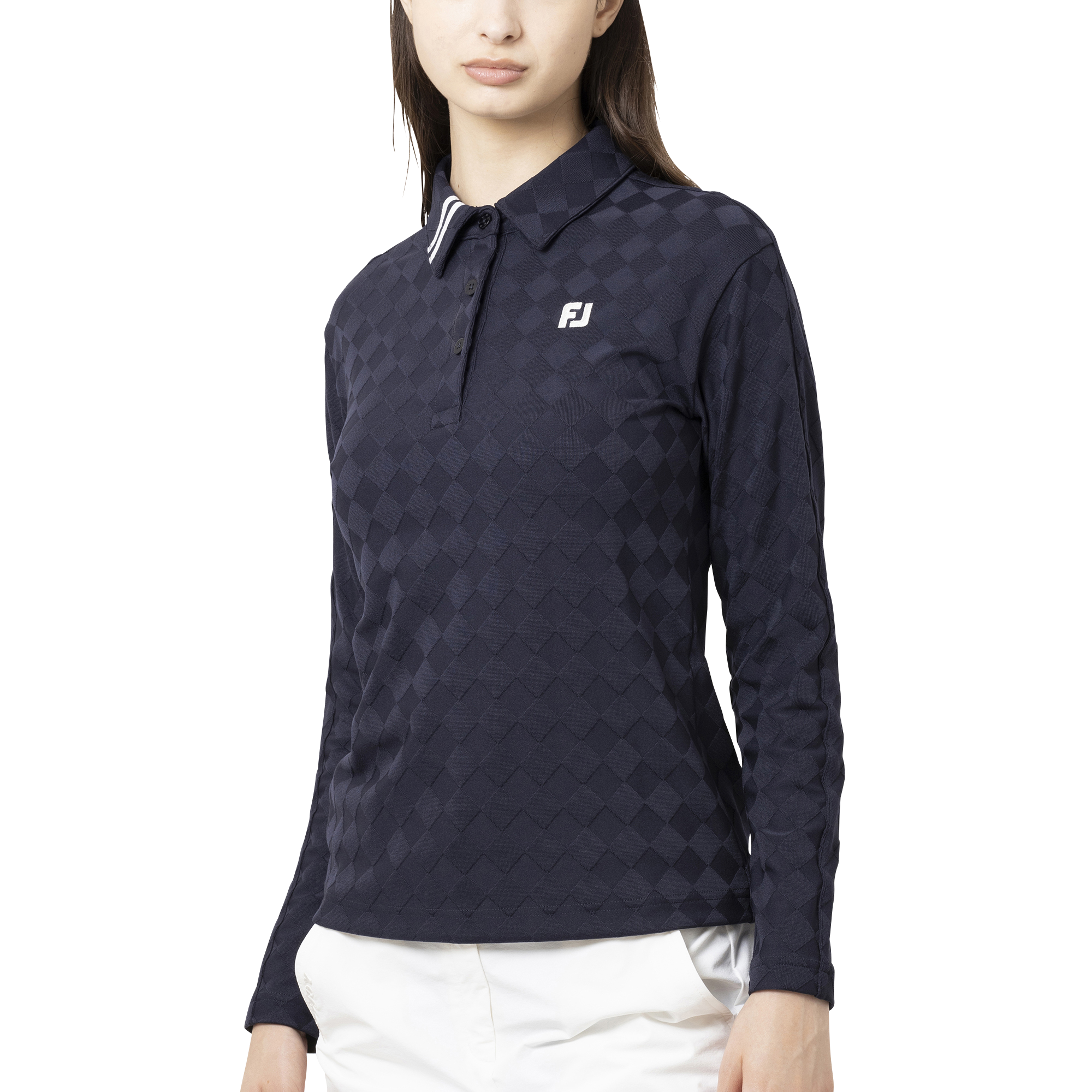 アーガイル柄を裏表交互に配置して立体感を表現した洗練されたデザイン。動きを妨げないデザインと、快適さを追求した素材が特徴。